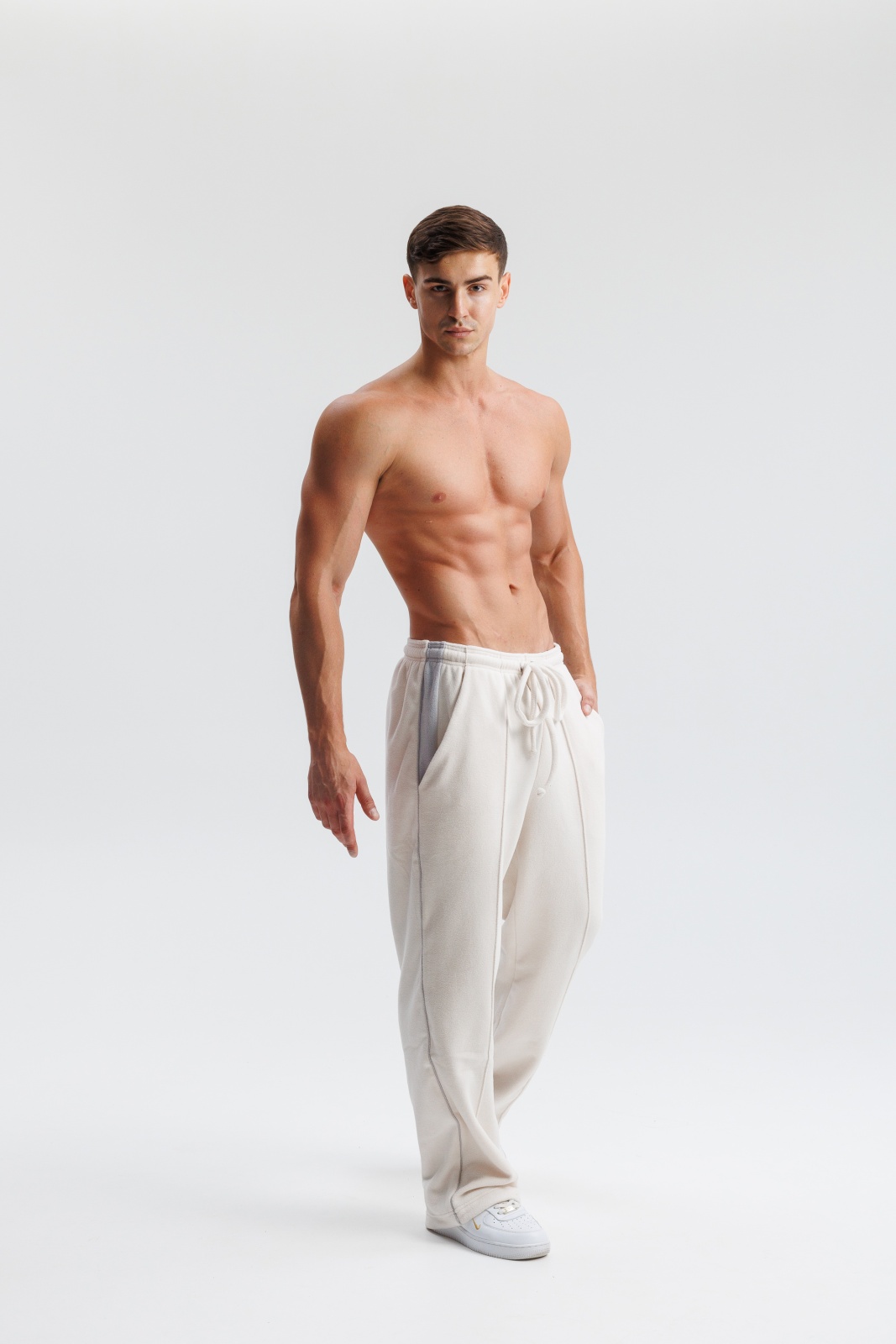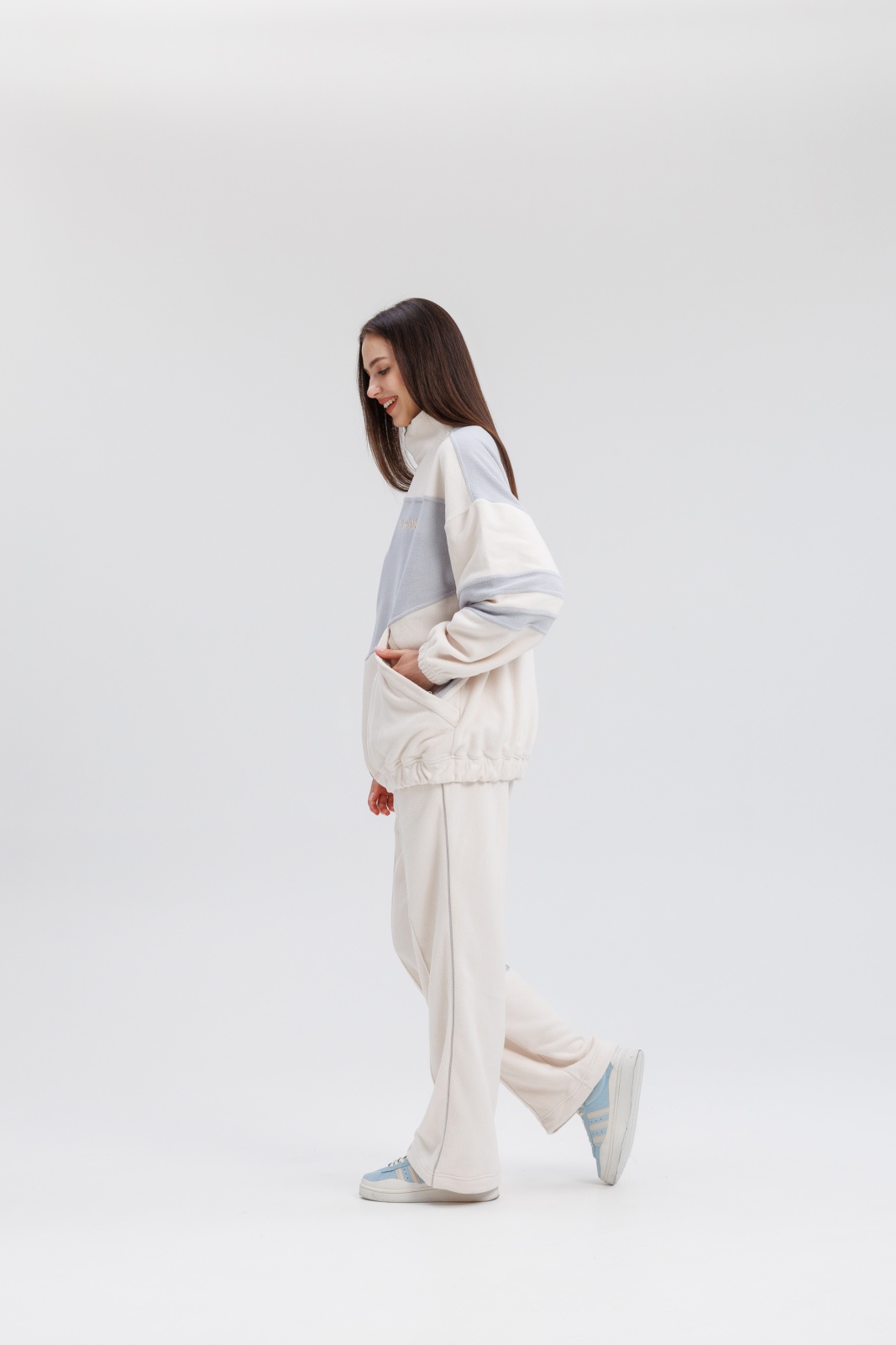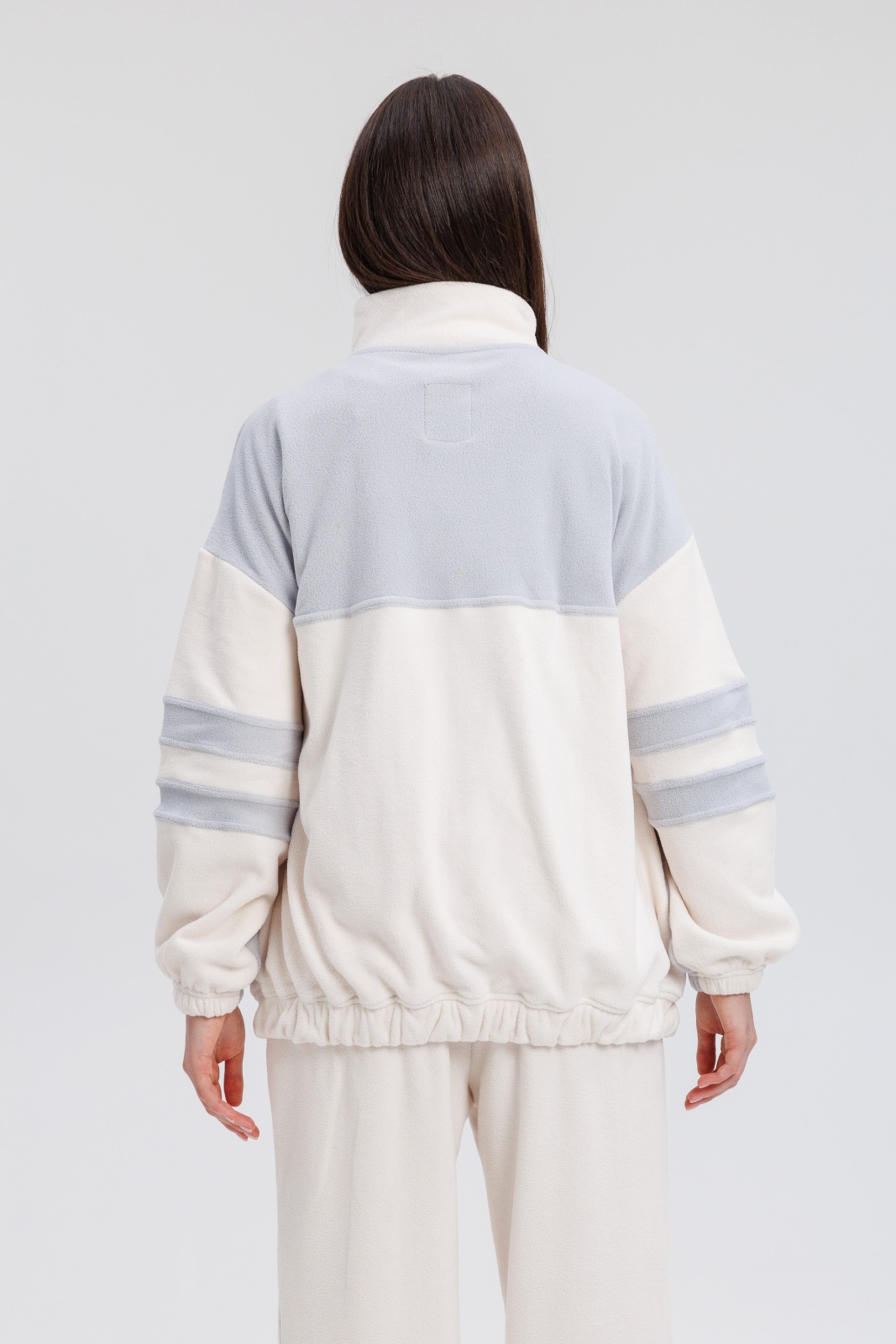 Костюм включает куртку на молнии с удобными карманами и брюки с эластичным поясом — комфорт в каждой детали.