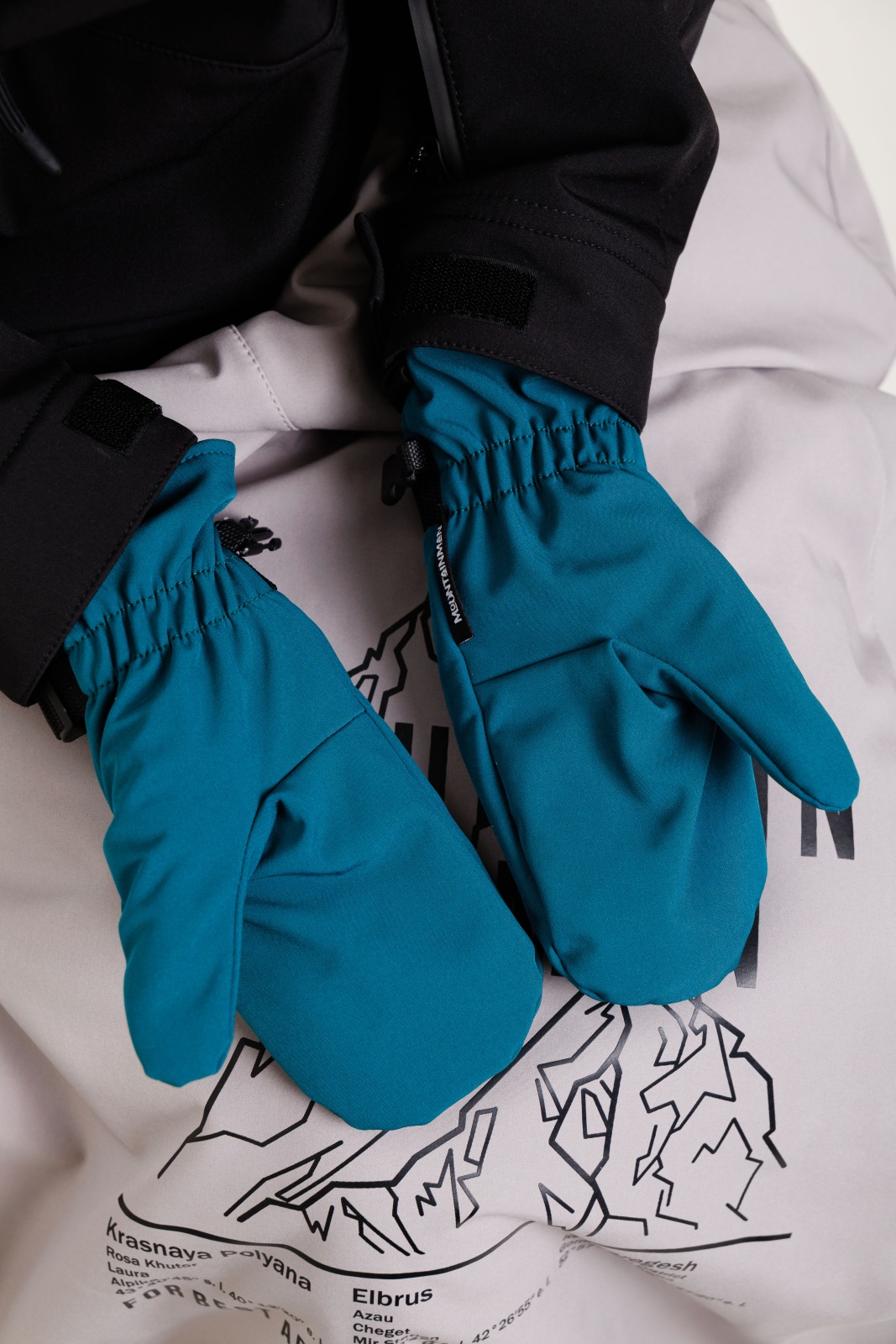 • Резинка и стропа на запястье: препятствуют попаданию снега внутрь варежек, обеспечивая дополнительную защиту.
